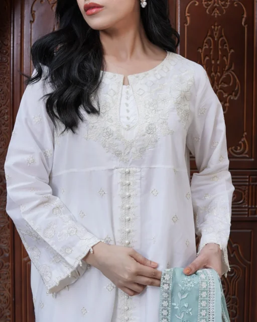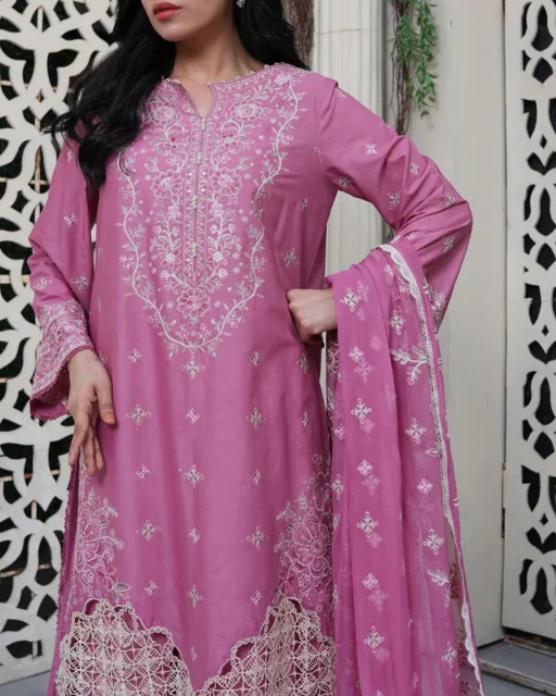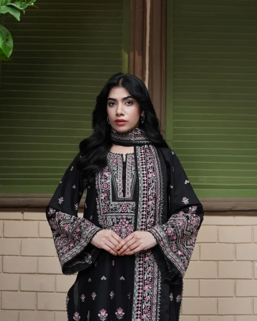Shabnam reflects freshness and modern elegance. The premium lawn shirt and cambric trousers provide comfort, while the chiffon dupatta adds softness. This outfit is perfect for semi-formal events and daytime