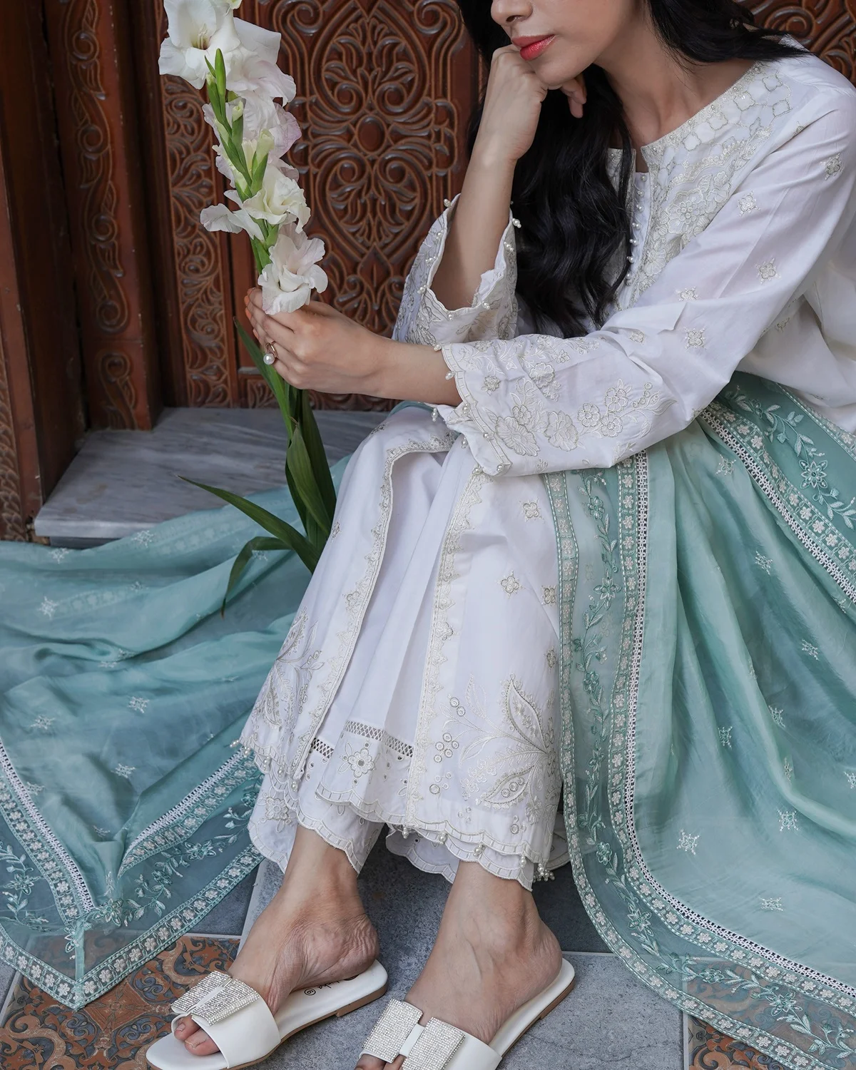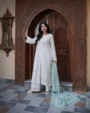 Nasreen – White Rose is a timeless expression of purity and sophistication. Crafted with premium fabrics and elegant detailing, this ensemble is designed to offer both comfort and refined style — perfect for formal occasions and festive wear.